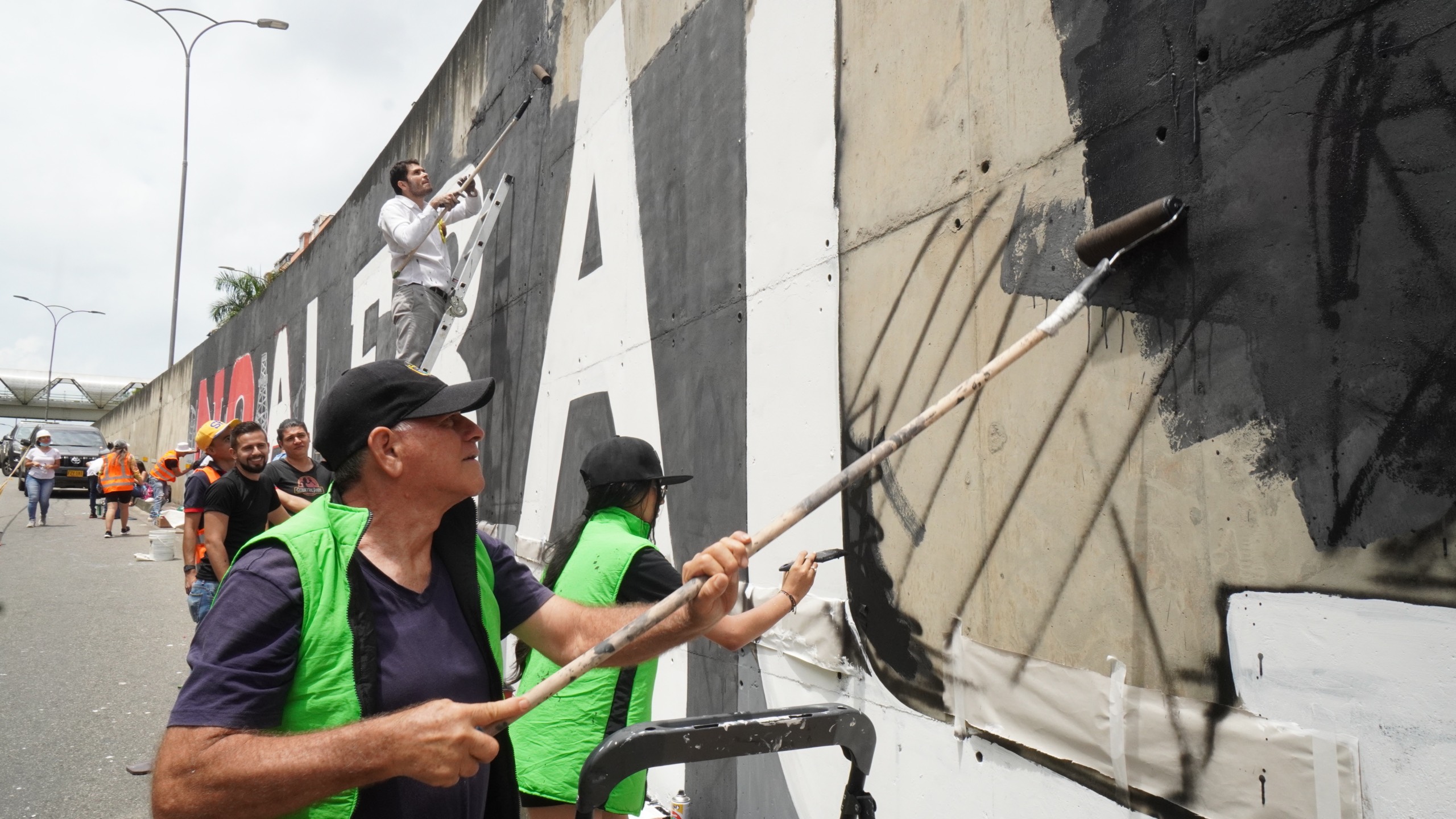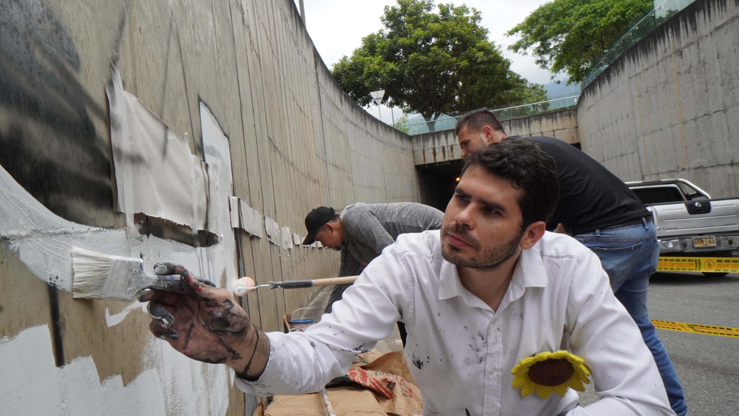 Fabian Diaz, representante a la cámara por Santander, y un grupo de voluntarios crearon un mural para expresar su desacuerdo contra la práctica del Fracking. Tema que ha generado polémica luego de que la ANLA aprobarauna licencia ambiental para la realización de un piloto de Fracking del proyecto Kalé, desarrollado por Ecopetrol, en Puerto Wilches, municipio de Santander.